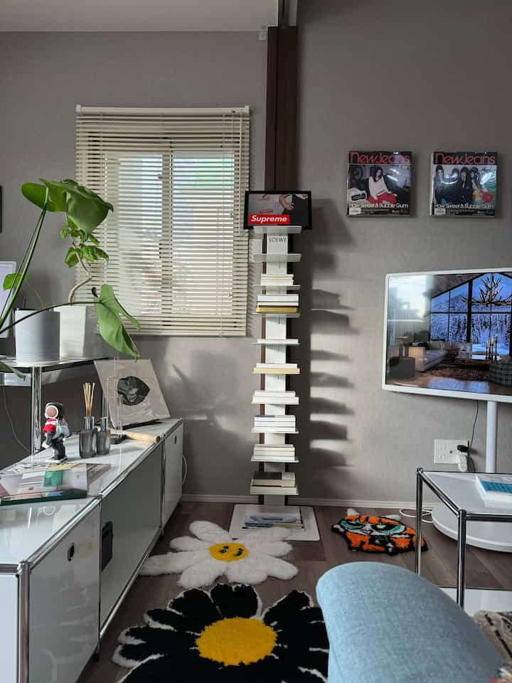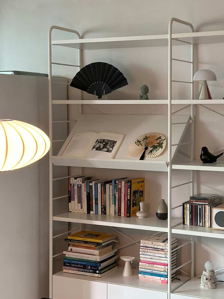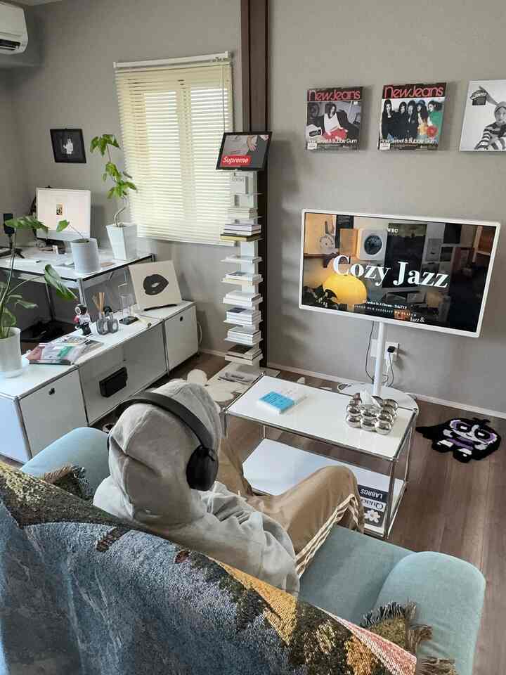 私のようにリビングルームに書斎スペースを飾るなら、机と本棚をコの構造でお勧めします。