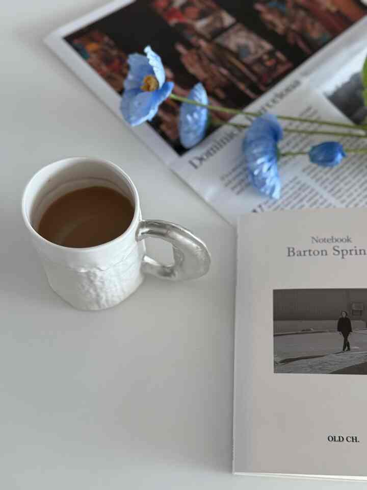 光沢のある銀の質感を持つツイードマグを使用するたびに