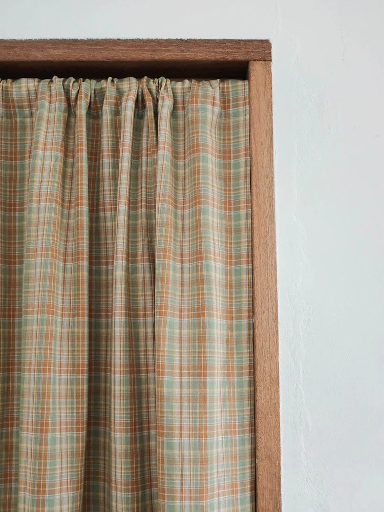 Kitsch イエロー チェック ヴィンテージ カーテン[2サイズ]