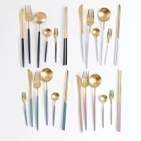 デザートカトラリー スプーン&フォーク&ナイフ ゴールド 3点セット