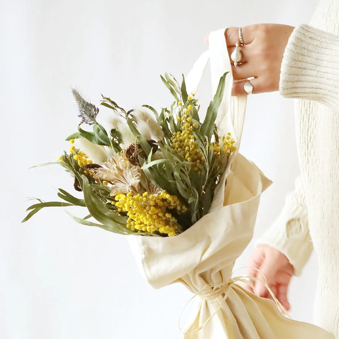 ミモザのバッグ入りブーケ