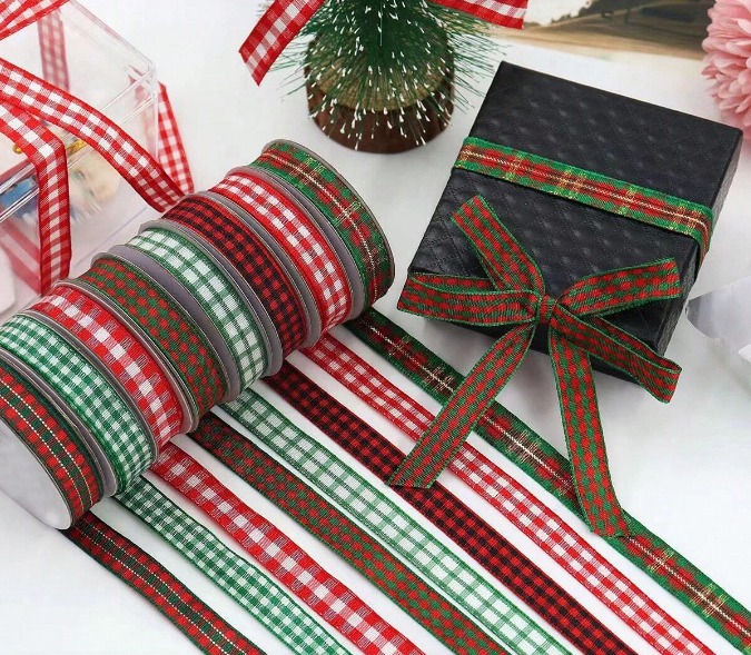チェック柄リボン付きギフトボックス 1個[6色・2サイズ]