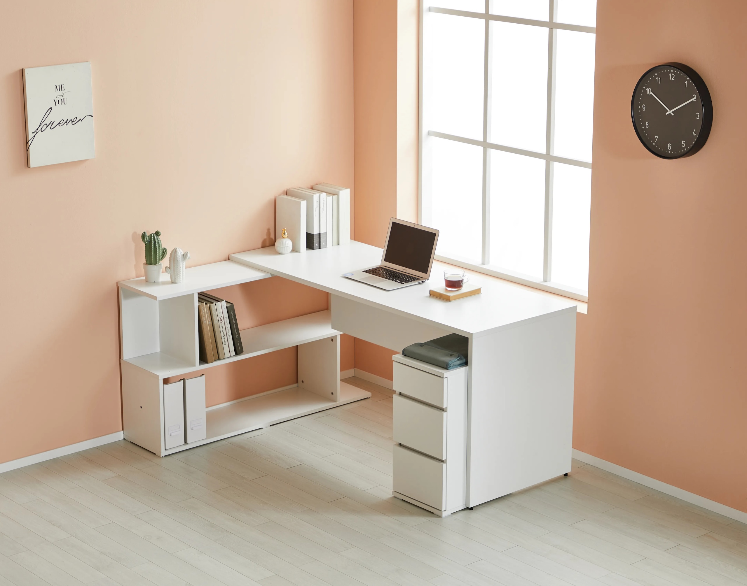 Ivyワイドデスク&本棚セット ホワイト[2サイズ]