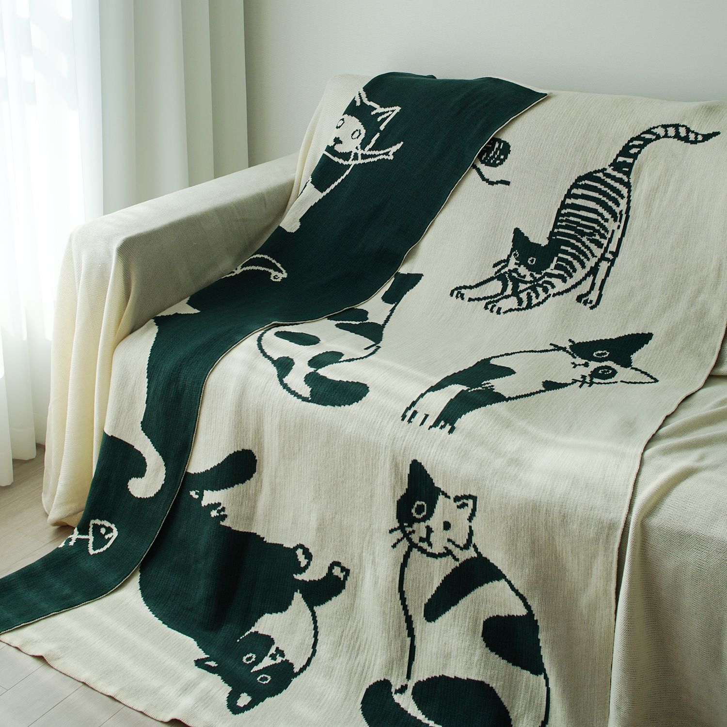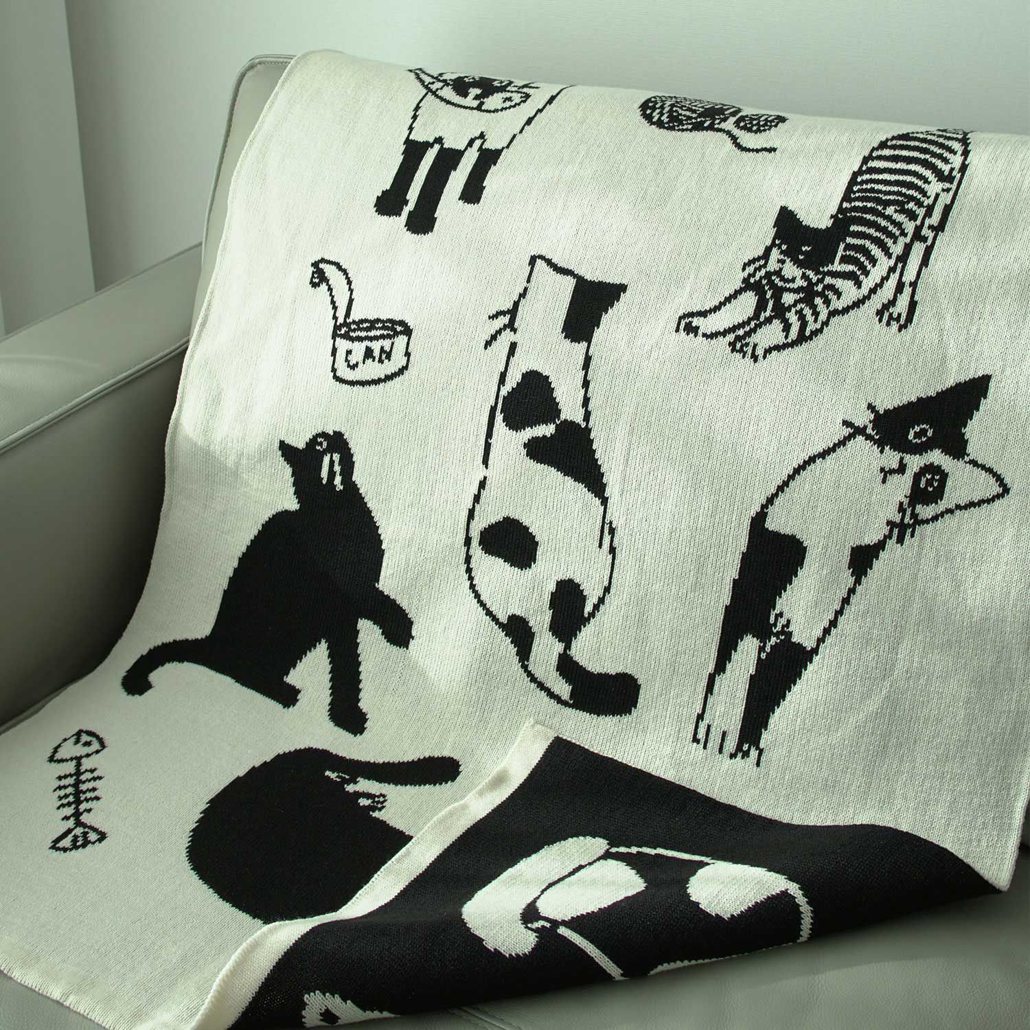 猫 両面 ニット ブランケット[2色・3サイズ]