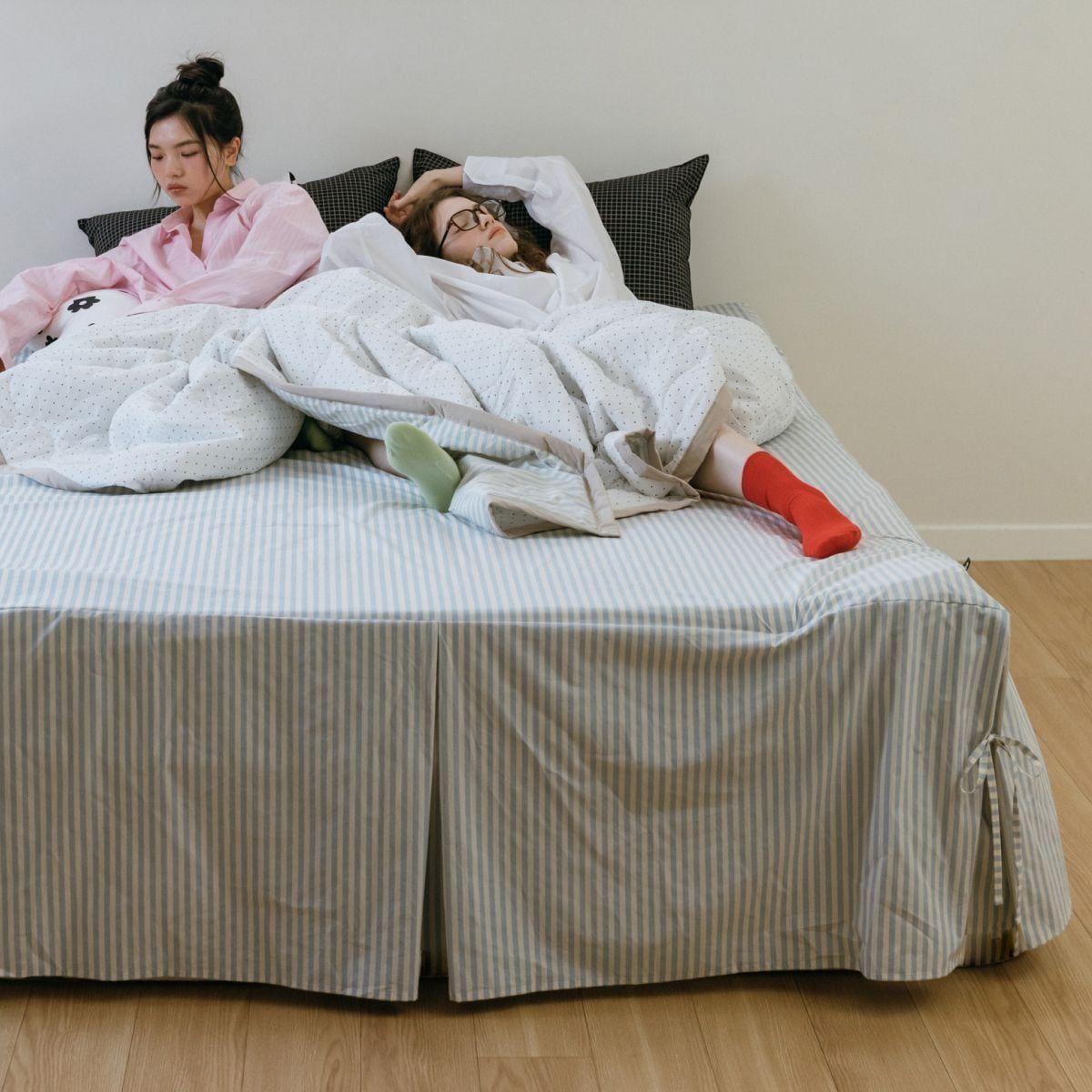 ストライプ リボン ベッドスカート[3色・3サイズ]