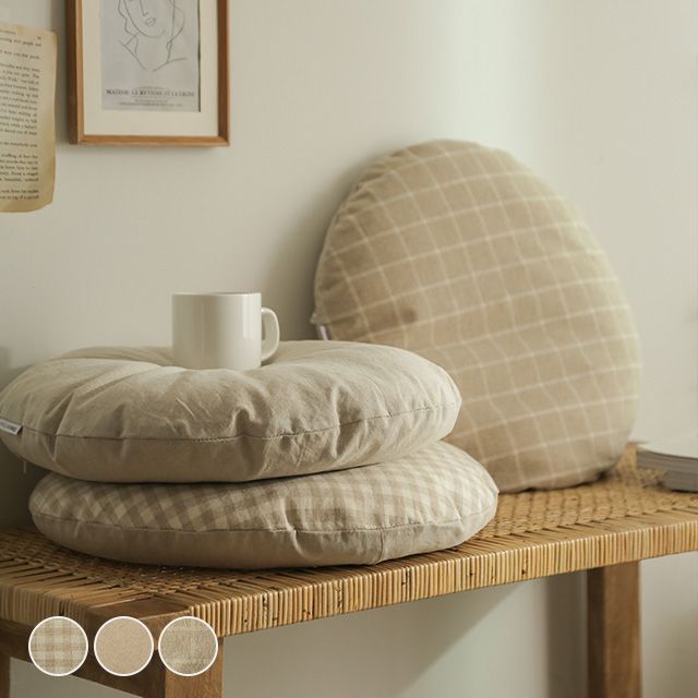 【中身付き】ベージュ 円形クッション[3色]