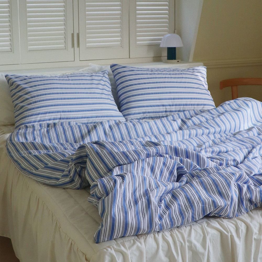 クラシック ストライプ 布団カバー ブルー[3サイズ]