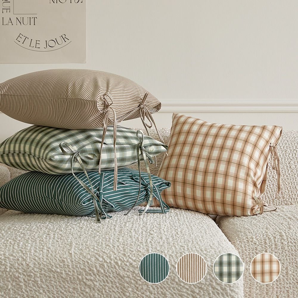 Madeleine リボン ストリング 60番手 高密度純綿 クッションカバー[6色]