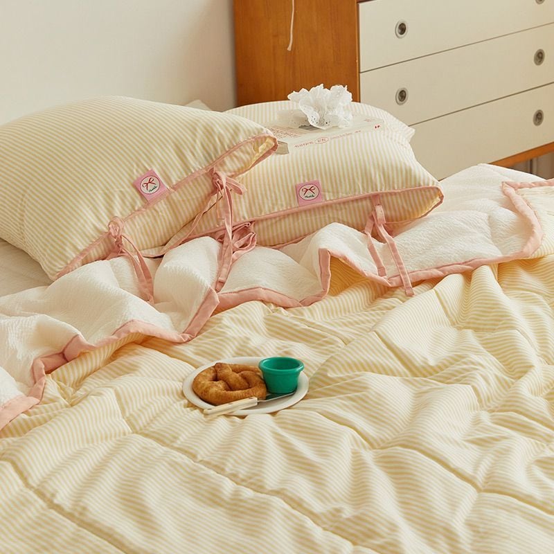 Ribbon Cake シアサッカー 夏用 冷感 カバーのいらない布団セット[8色・3サイズ]