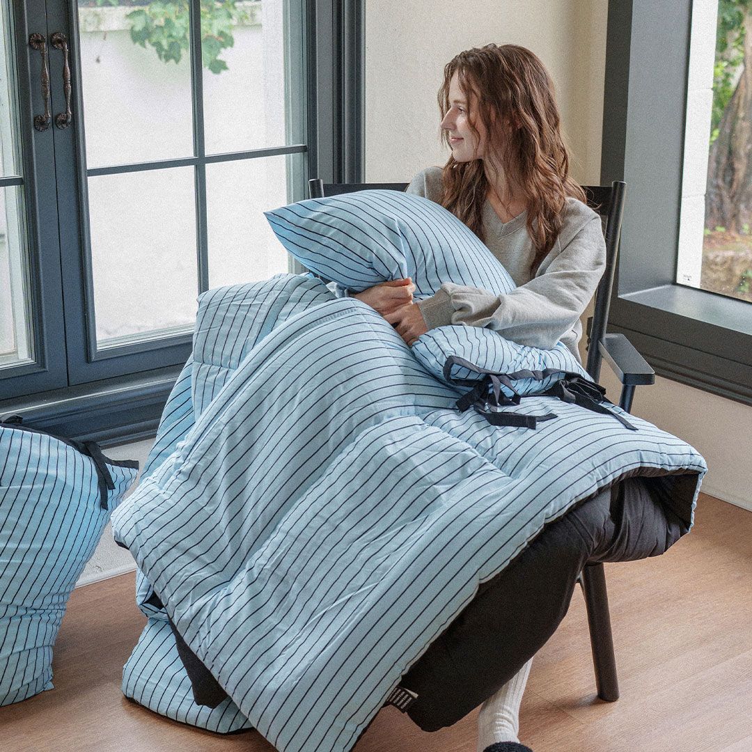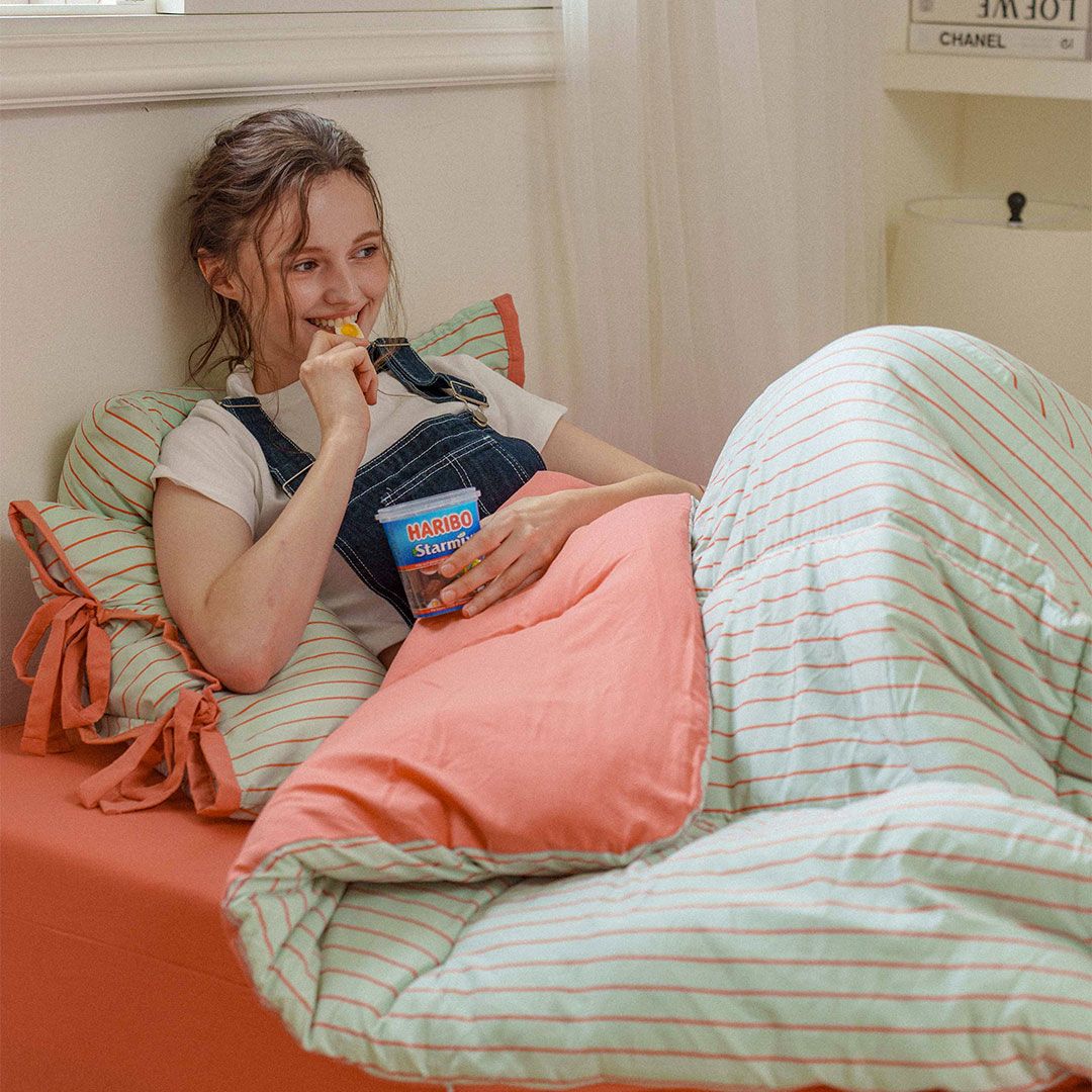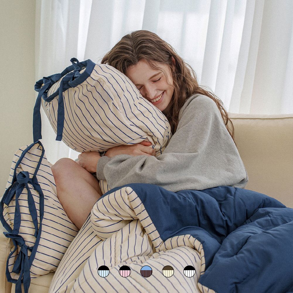 Essential ストライプ リボン カバーのいらない布団[11色・2サイズ]