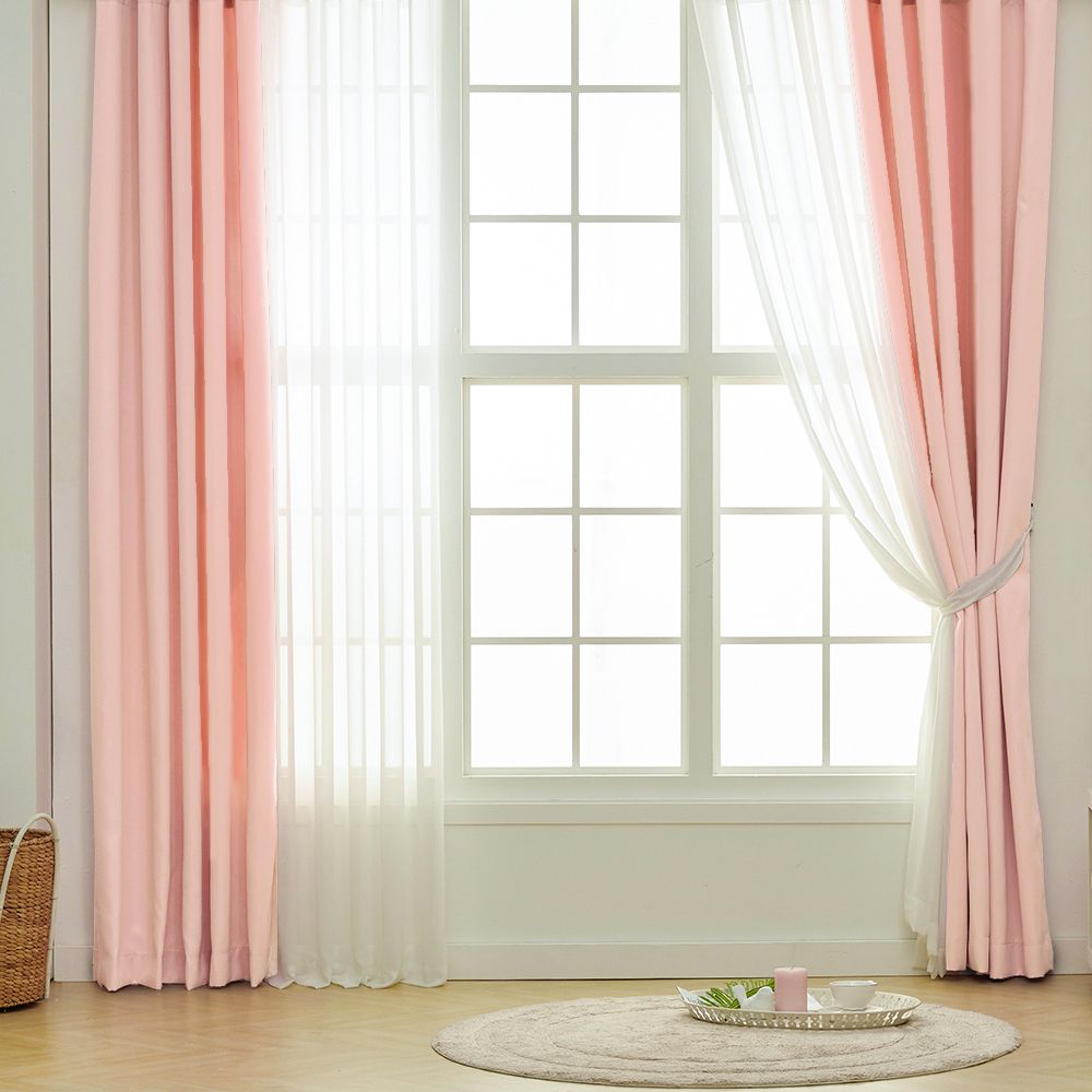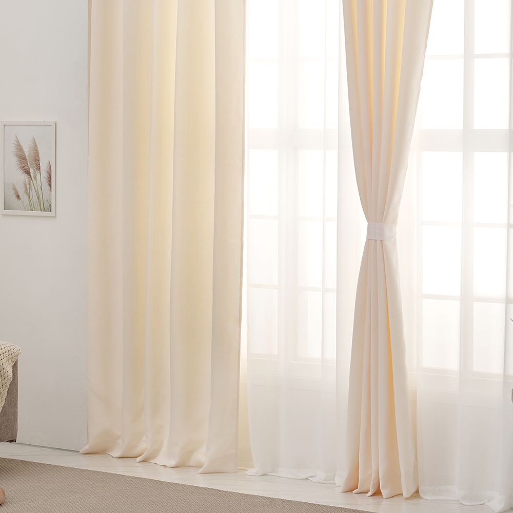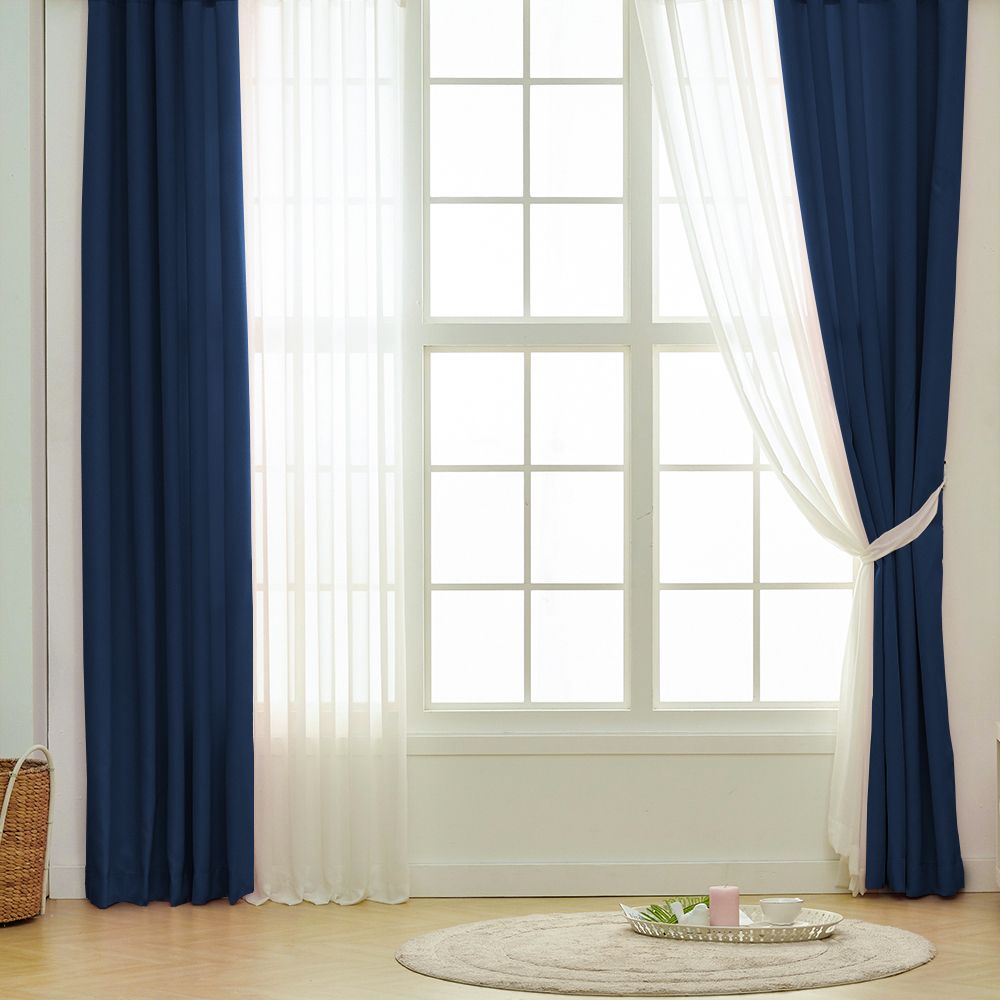 Layered Curtain 遮光カーテン2枚&シフォンカーテン2枚 セット[19色・2サイズ]