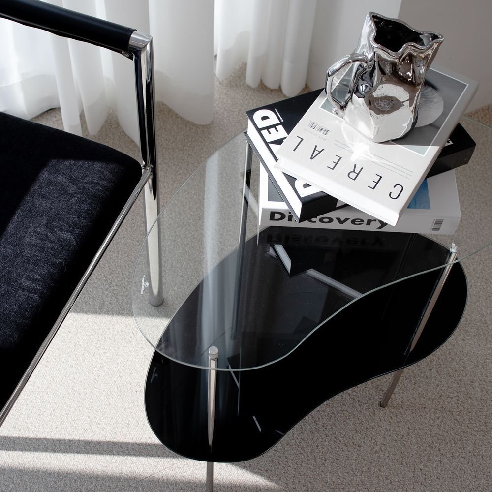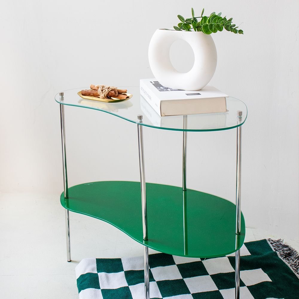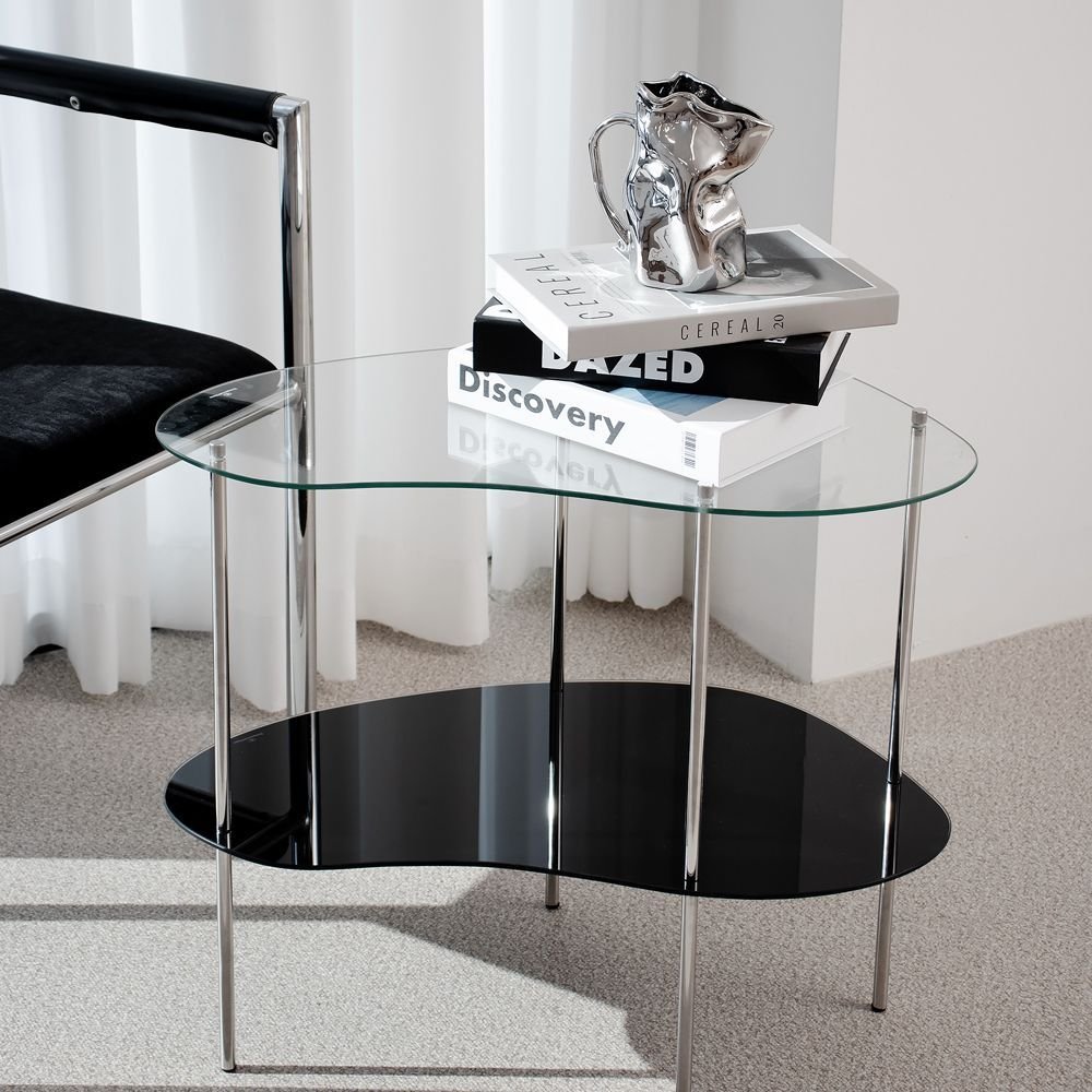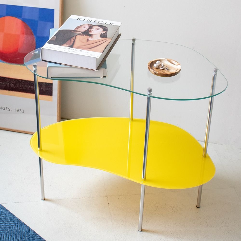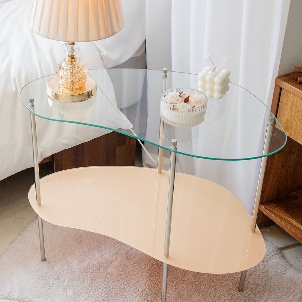 2段 ガラス サイドテーブル[4色]