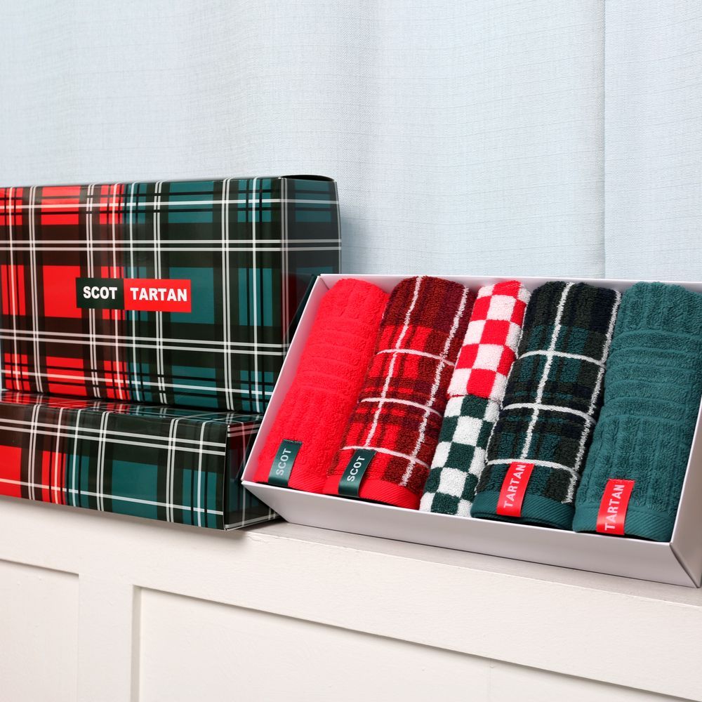 チェックタオル2枚&ソリッドタオル2枚&ハンドタオル2枚 ギフトセット
