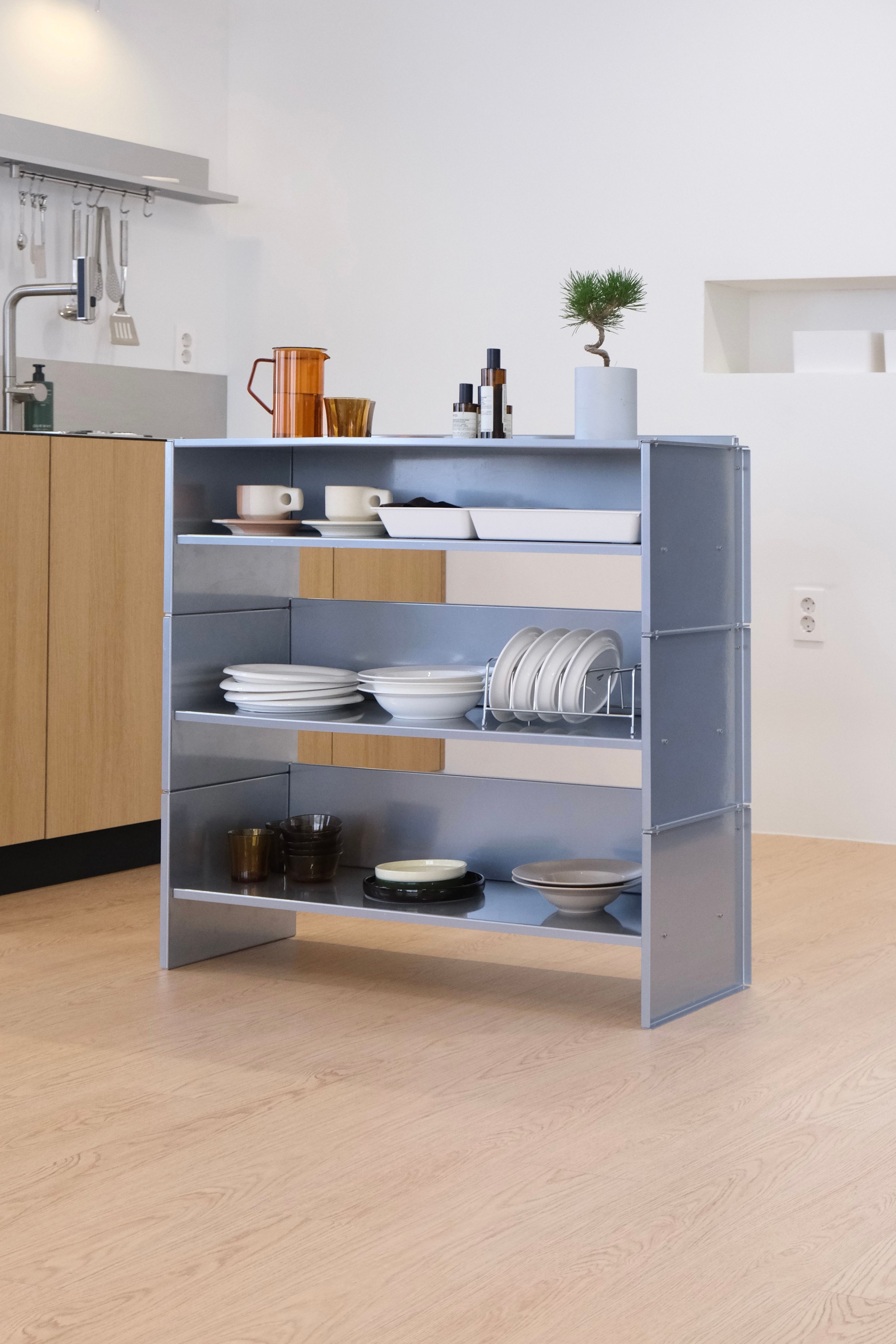 3段 ウッド スチール ラック M