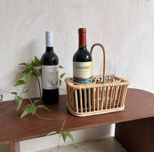 ハンドル付き ラタンバスケット[2色]