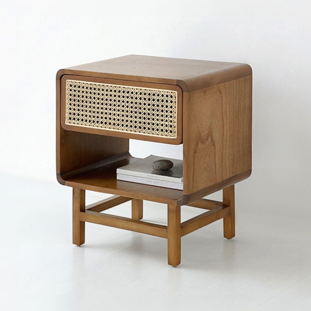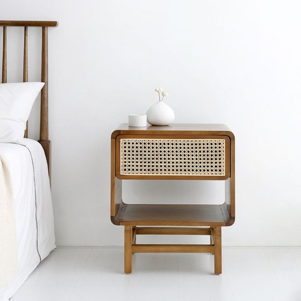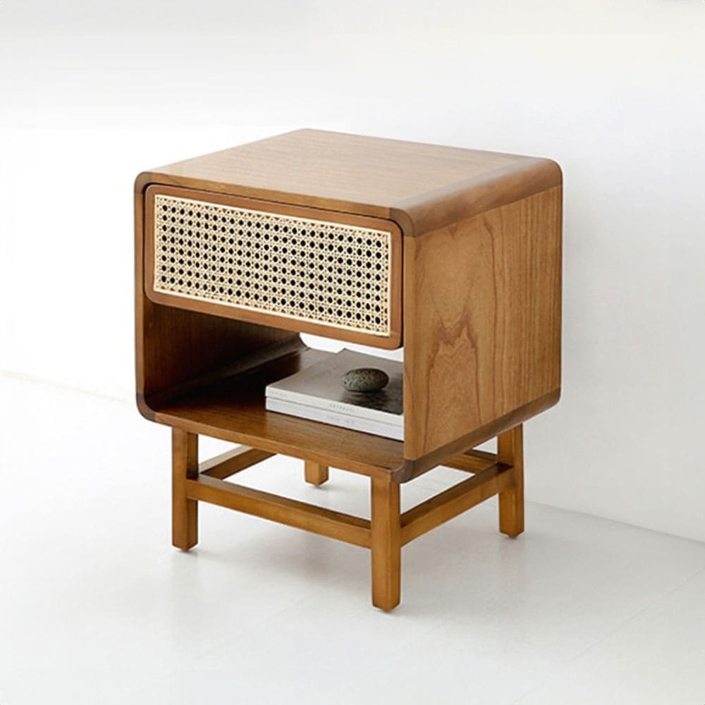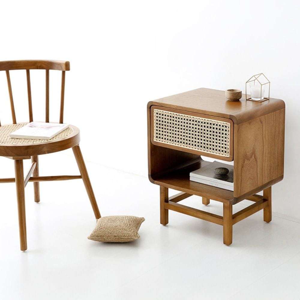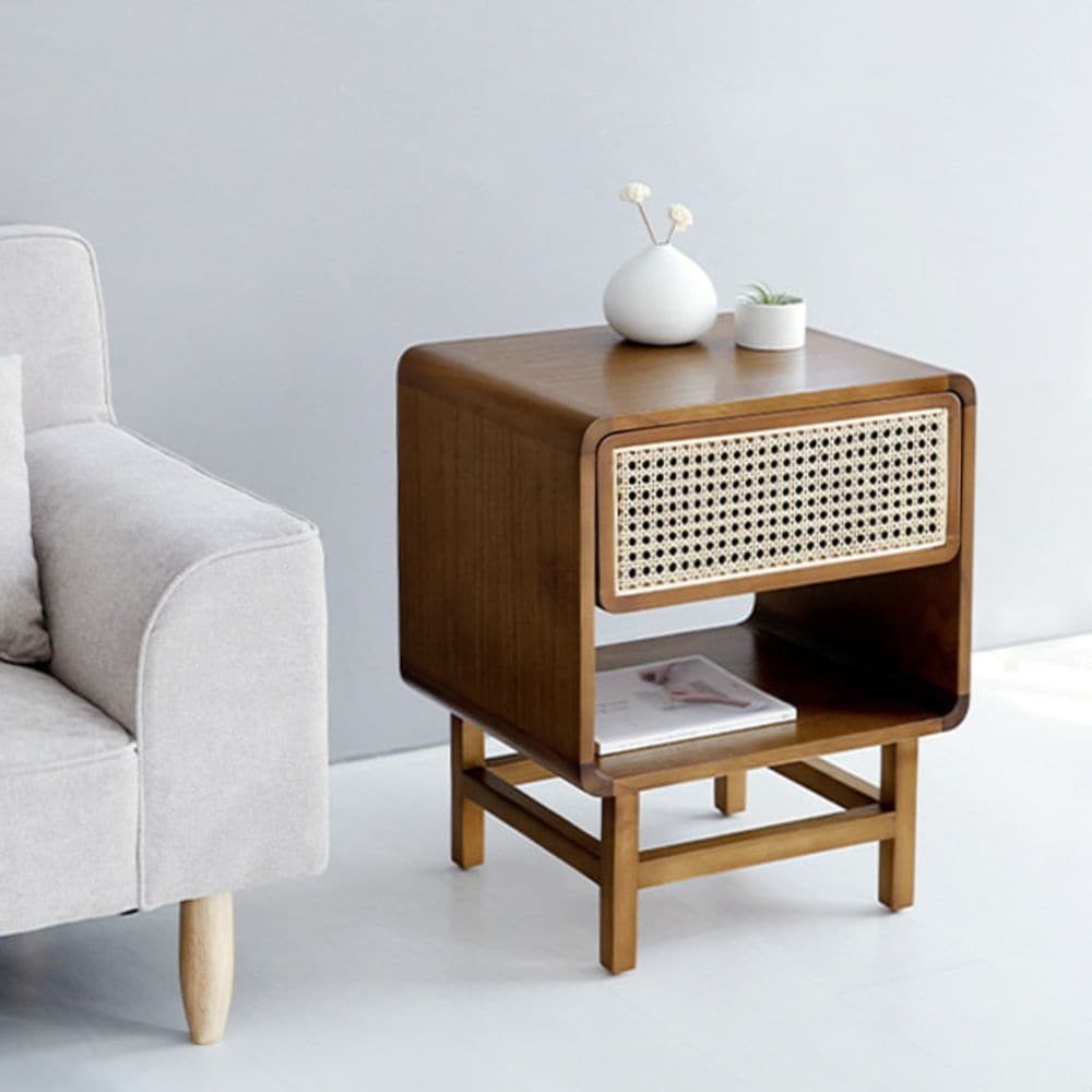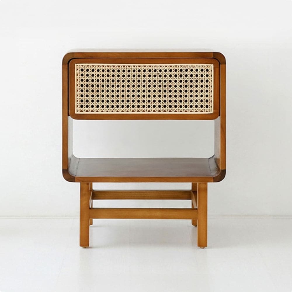 CESBON ウッド サイドテーブル 収納付き ラタン KCN002