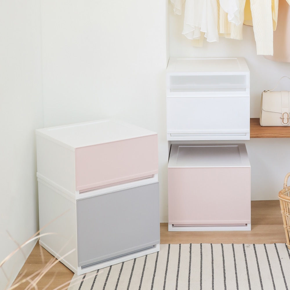 スタッキング 収納ボックス 2点セット[3色・2サイズ]